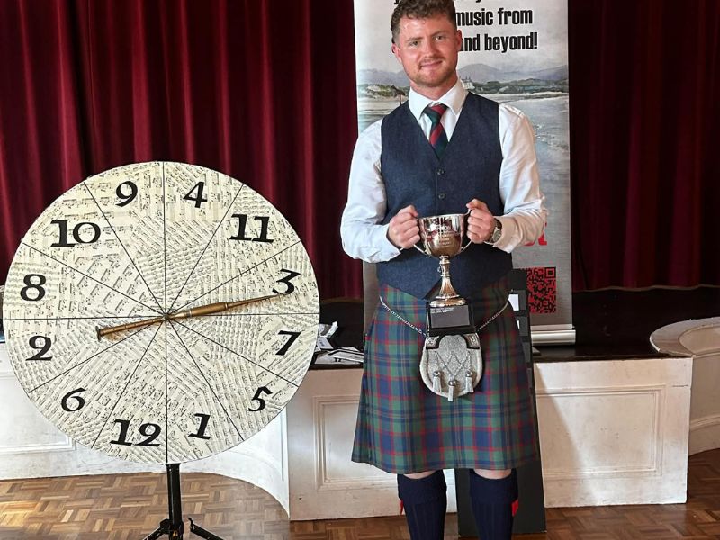 radley Parker of Glasgow was the overall winner of the 2026 Pipe-Major's Wheel of Fortune Invitational Solo Piping & Humour Competition, held at the Danderhall Miners' Club before the customary appreciative and lively audience. Parker won both the Medley and the MSR events.