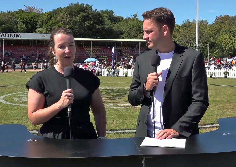 Libby O’Brien and Max Simpson, 2026 New Zealand Championships livestream presenters.