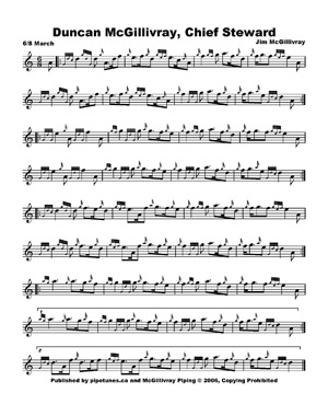 It was this environment that drove the creation of a four-parted 6/8 march called “Duncan McGillivray, Chief Steward,” the first tune I’d written.