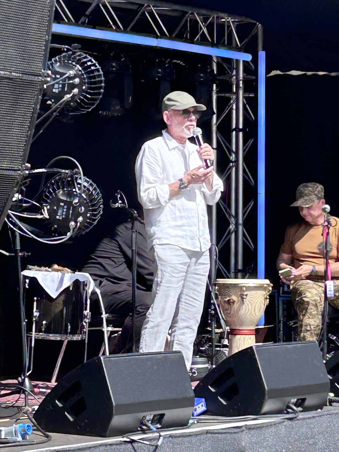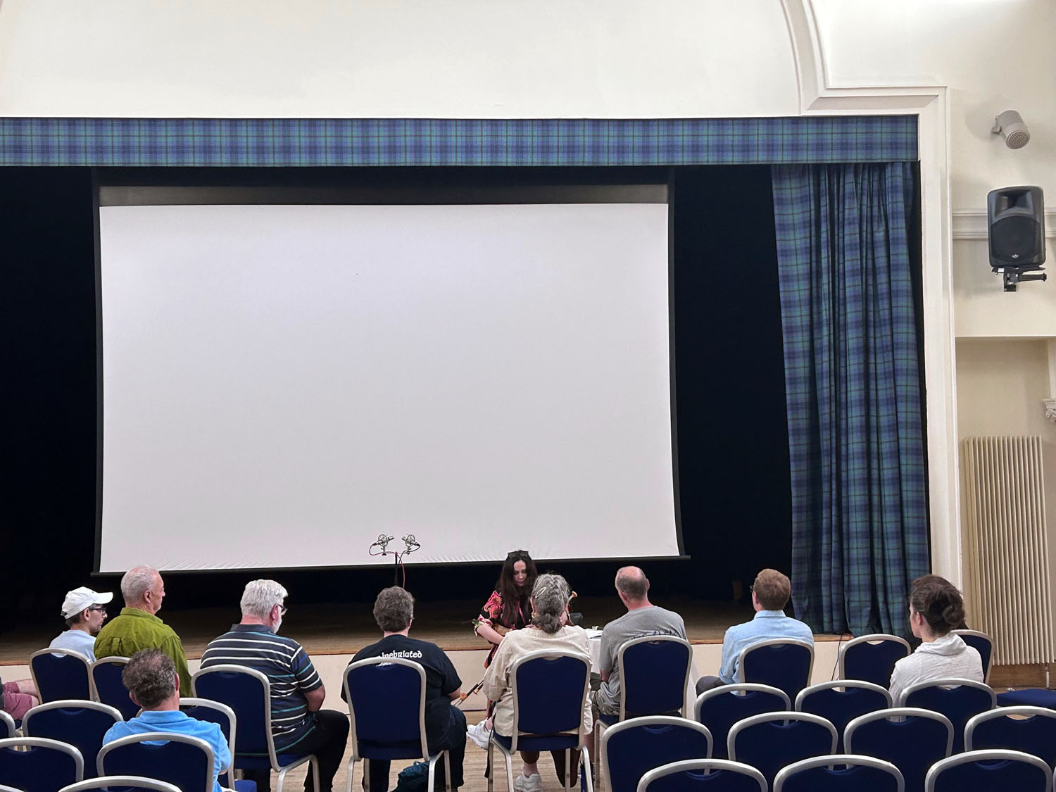 By the time the listening party ended, the auditorium was hot enough to steam a haggis, so out into the festival site at the front for a few tunes from Ukrainian band Kyiv Ethno Trio, featuring a trio of skilled multi-instrumentalists, where the pints were now flowing and people were enjoying the sunshine.