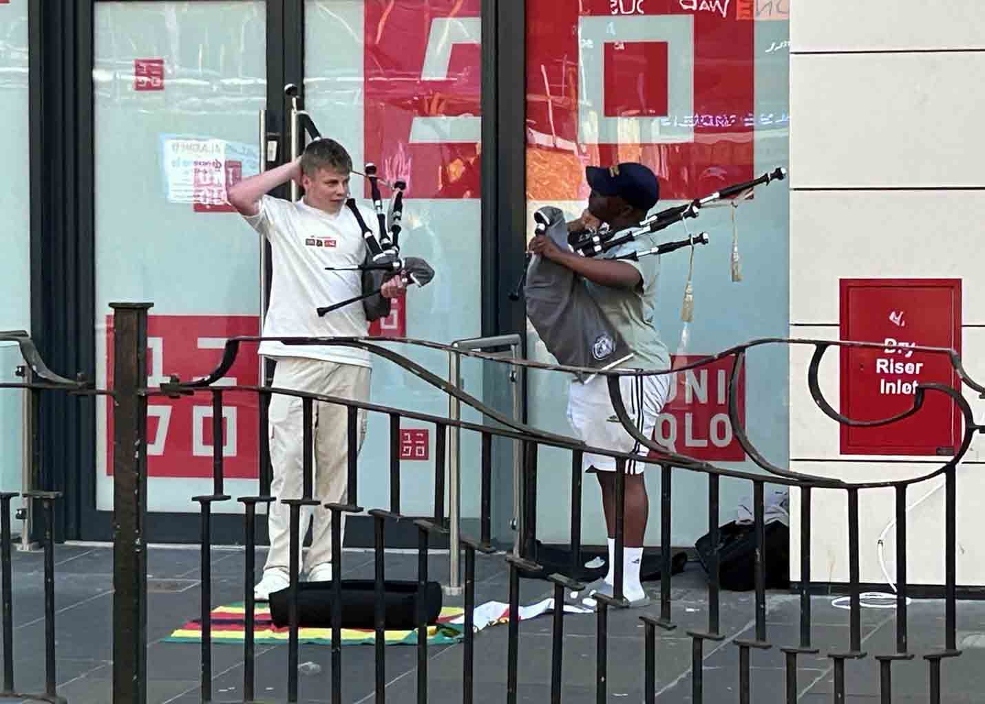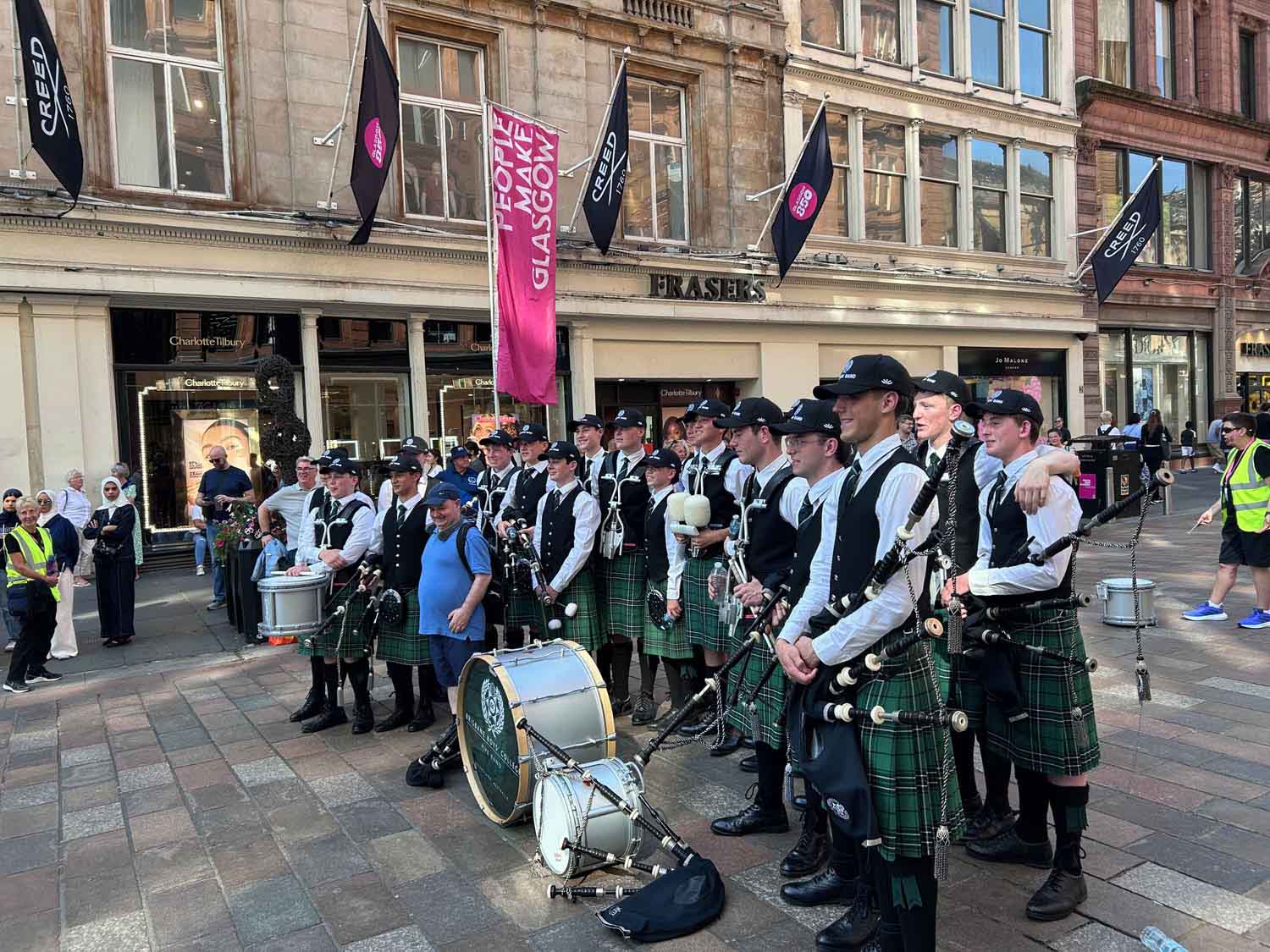 A meander down Buchanan Street back to the B&B for a break, and there was the Brisbane Boys College, Australia, laying down their tunes in the shady spots, with an excellent overall sound. It appears that visiting pipers are making the most of the piping mayhem, with buskers appearing randomly on Argyle Street and other locations.
