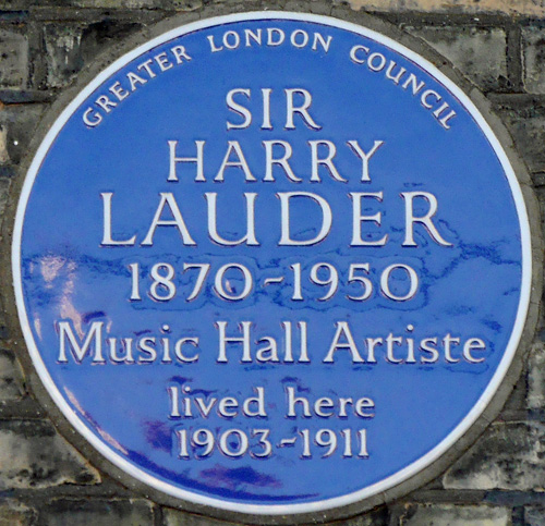 Lauder is honoured in numerous ways, including a large memorial in Invernoaden, Argyllshire, Scotland, and a historical plaque at 46 Longley Road, London, another of his many residences.