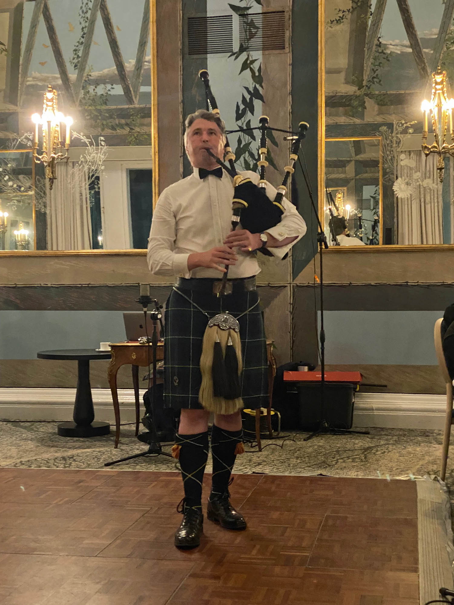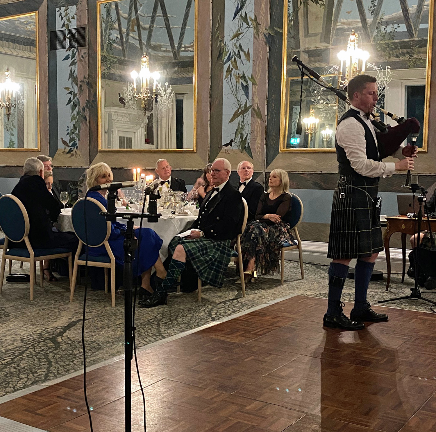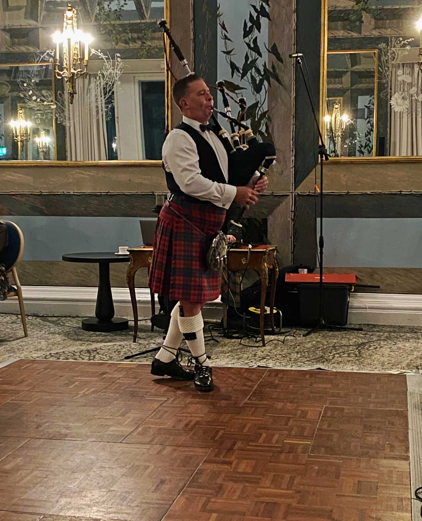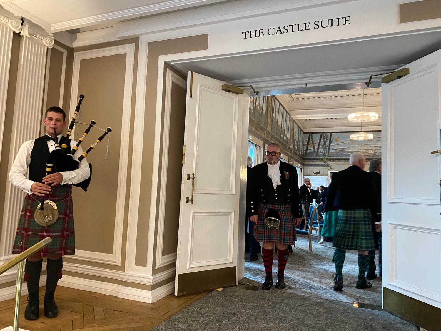 Edinburgh – August 30, 2025 – A capacity crowd of well-dressed guests gathered to hear four of the world’s top solo pipers perform in a recital setting at the Caledonian Hotel in Scotland’s capital city’s city centre for the annual Captain John A. MacLellan MBE Memorial Dinner & Recital Competition.