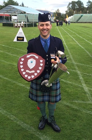 Braemar, Scotland – September 5, 2015 – Jori Chisholm of Seattle was the overall winner of the J. Colin MacKenzie Challenge Shield at the Royal Braemar Highland Games, winning both light music events. Gordon McCready of Renfrew, Scotland, won the piobaireachd competition and the gold medal for it. Weather cold and windy and temperatures never got above 10 degrees, but there was no rain. The event had the usual strong attendance by non-Scottish contestants, and Chisholm also received the Braemar Silver Medal for best “overseas” piper.
