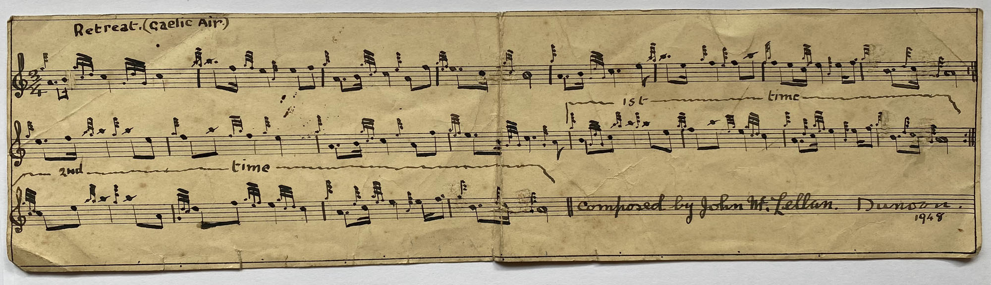 A 3/4 retreat march titled “Gaelic Air” was scored in 1948. Like all McLellan compositions, the beauty of the piece lies very much in the simplicity of its strong and original melody.