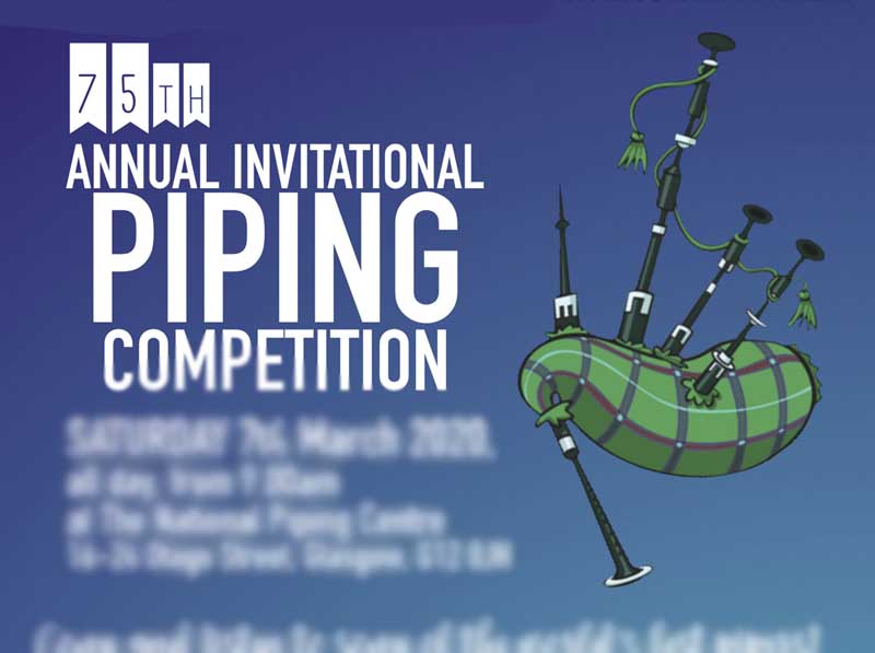Glasgow – March 7, 2026 – With a Piobaireachd win and a second in the MSR, Finlay Johnston was the overall champion at the 2026 Glasgow Uist & Barra Association’s Invitational Solo Piping Competition held at the National Piping Centre’s Otago Street premises.
