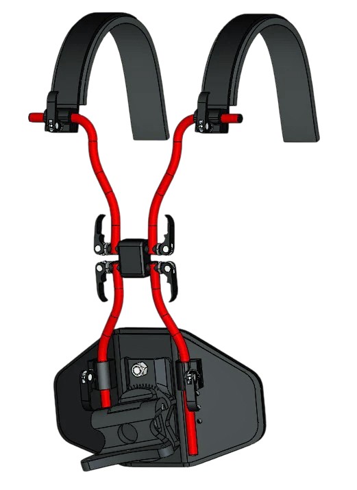 He added that the ErgoMount Drum Harness’s “belly plate, shoulder bars and mounting adapters have all been redesigned,” promising improved fit with fewer parts, going from 70 parts to 50, thus reducing the overall weight and allowing for adjusting the product “faster and easier . . . without the use of tools. The eight main points of adjustment can be changed using thumb cam levers.”