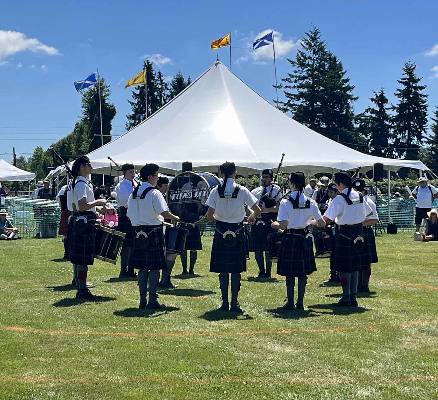 Mount Vernon, Washington – July 12-13, 2025 – The Skagit Valley Highland Games were held under blazing sunshine, where a large entry in the solo and lower-grade band events created a lively and thirsty atmosphere.