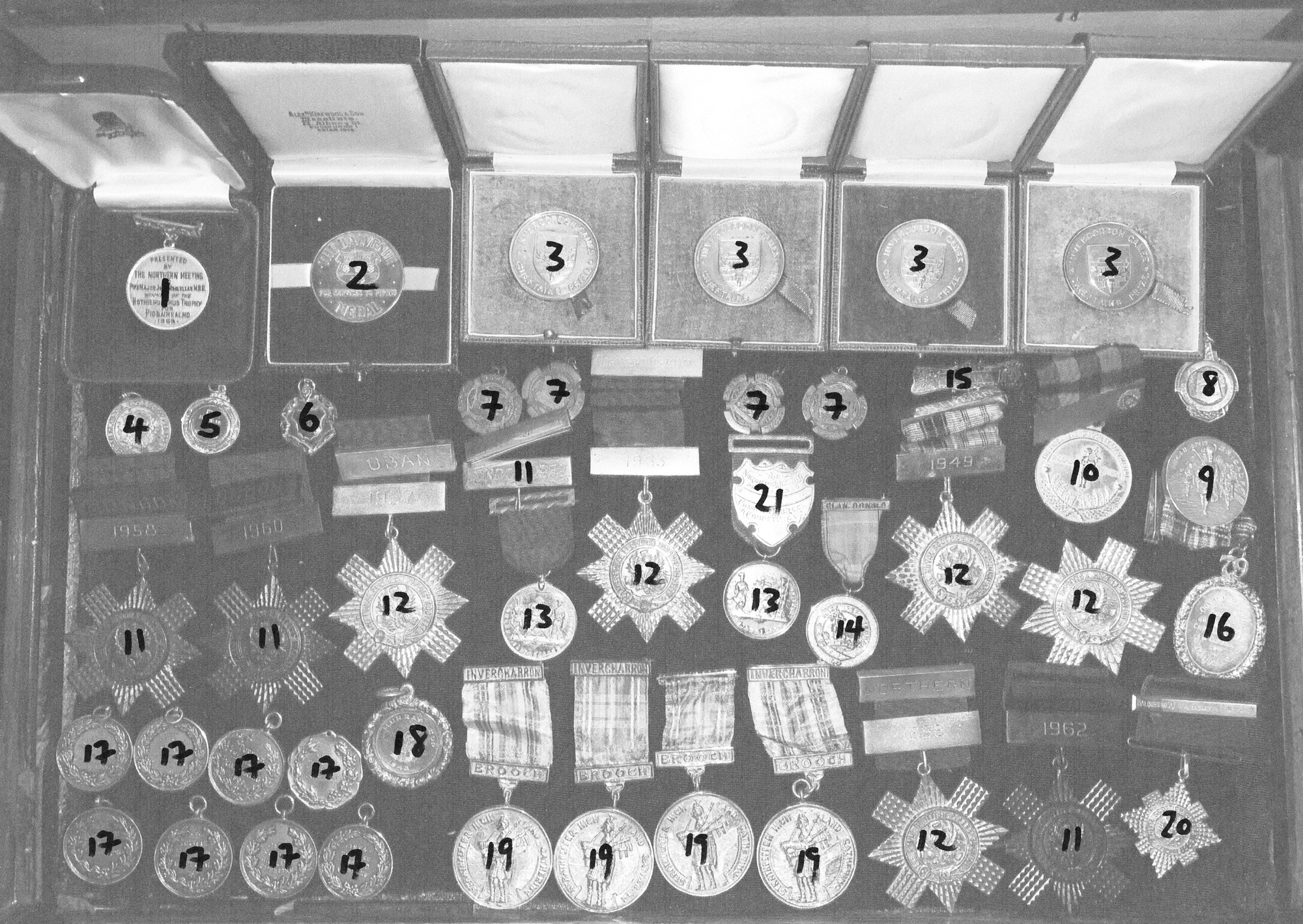 - Five Royal Scottish Pipers’ Society Silver Stars (eight won in all, four at Oban, four at Inverness. Missing stars probably not presented that particular year.)