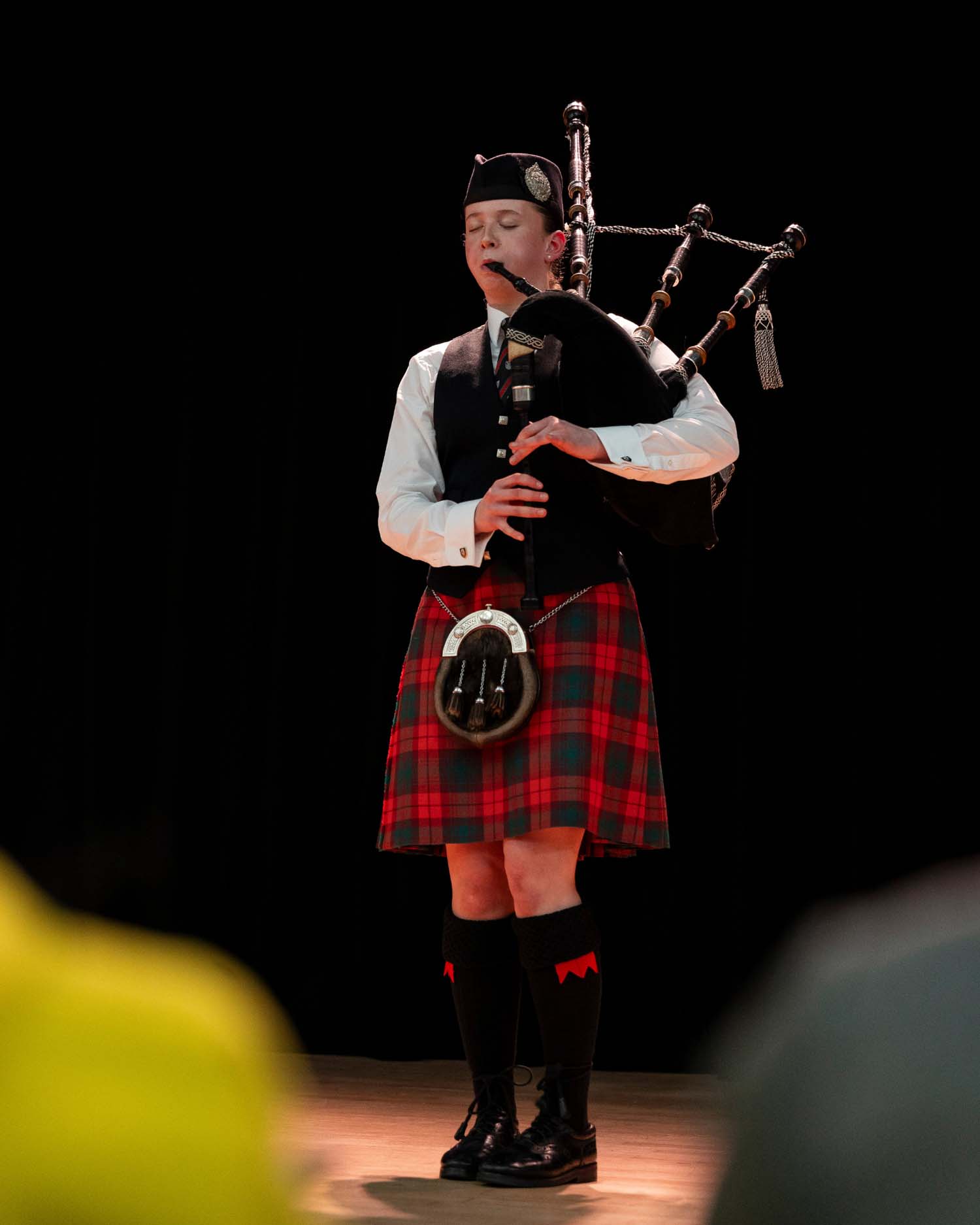 Glasgow – February 21, 2026 – The National Piping Centre was stowed out with young pipers and their proud parents at the organization’s 2026 Junior Solo Piping Competition, where Charlie Mack won the aggregate trophy in the Under 18 category, Shay McInarlin gained the Under 15 aggregate, Larry Presslie won the overall trophy in the Under 13, and Charles Campbell was best aggregate in the Practice Chanter.