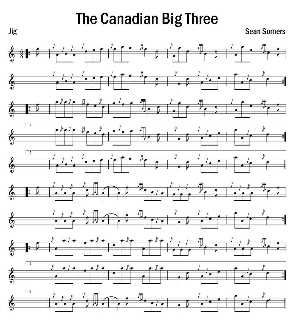 So, here’s Sean Somers’ four parted jig, “The Canadian Big Three,” along with a recording of him playing the piece: