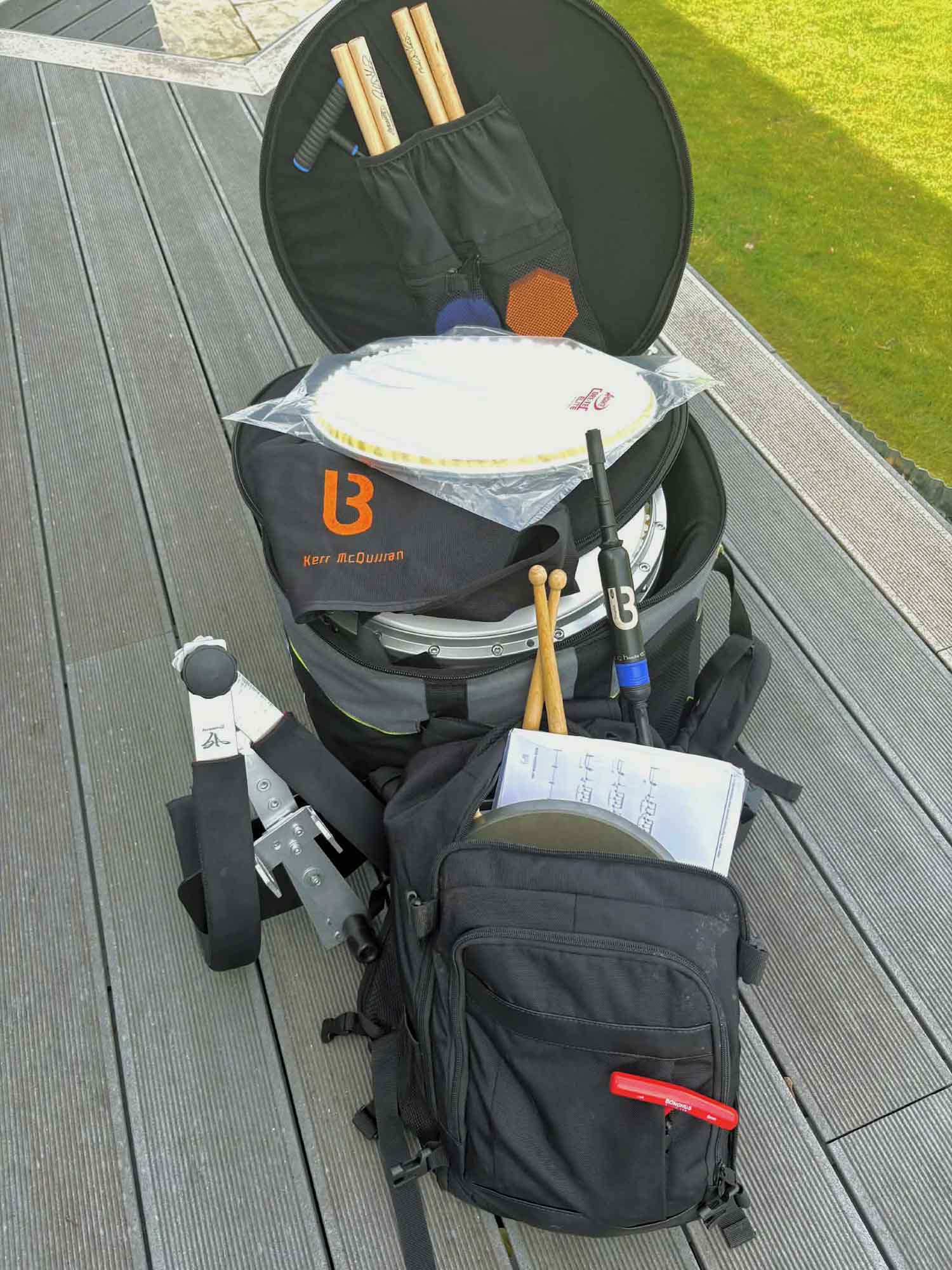 So, what does Kerr McQuillan typically take with him to competitions, band practices and workshops all over the world? Our StarBox feature has focused on pipers until now, but we thought it made sense to feature the reigning World Solo Drumming Champion as the first drummer to open his drum case and any other items he might carry.