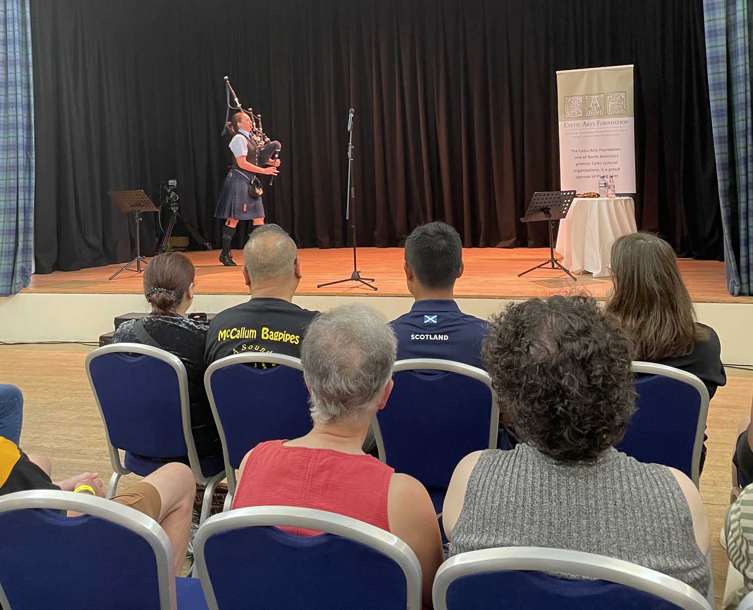 A feature of the festival this year has been drum-major performances and teaching, which were well-attended and quite interactive. There have also been daily injections of pibroch from Barnaby Brown and the Pibroch Network, including conversation, singing, performance, and just generally getting people to enjoy the music and the cultural connections outside the context of competition.