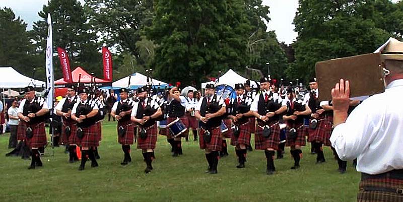 It has been said that the only people who still wear ties and waistcoats no matter what the weather are politicians, newscasters and pipers and drummers, but on a typically hot and sunny at the 158th Antigonish Highland Games in Nova Scotia piping, drumming and pipe band competitors were given permission by Atlantic Canada Pipe Band Association Chief Steward Rick Crawford to dispense with the woolly and strangling accessories to be more comfortable while performing their music in 31°C sunny conditions.